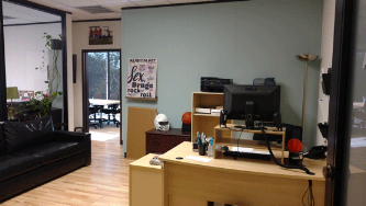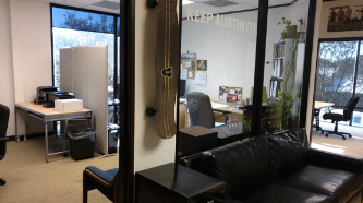 The "corner" office. This tenant used it as a conference room. Has glass windows on two sides. Lots of natural light.